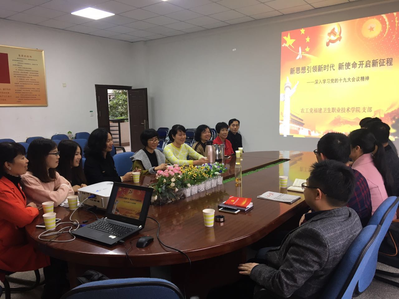 2017年11月30日下午,我院農(nóng)工黨支部在藥學(xué)系會(huì)議室召開學(xué)習(xí)會(huì),學(xué)習(xí)黨的十九大精神,會(huì)議由支部副主委肖健主持。