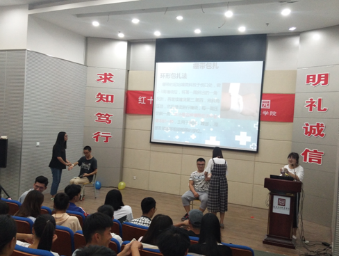 活動(dòng)以觀(guān)看動(dòng)漫形式視頻為開(kāi)端,向藝職院的同學(xué)們普及相關(guān)的健康知識(shí)。青年團(tuán)員朱文文等同學(xué)通過(guò)CPR講解、包扎技術(shù)等急救技能現(xiàn)場(chǎng)示范,教會(huì)藝職院同學(xué)們?cè)谝馔猬F(xiàn)場(chǎng)的自救和互救技能,真正做到將保護(hù)生命安全與弘揚(yáng)人道奉獻(xiàn)精神有機(jī)融合。