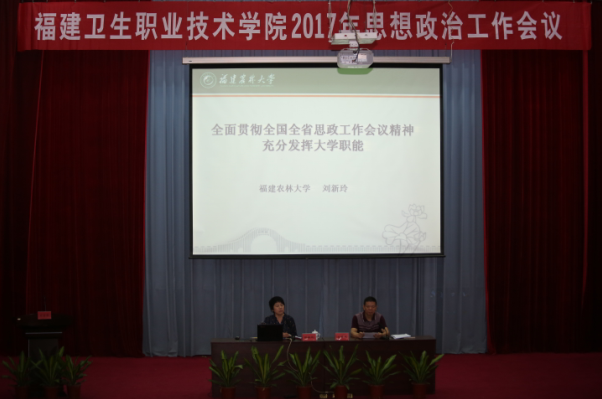 10月14日,我院在學(xué)術(shù)廳召開2017年思想政治工作會議。學(xué)院領(lǐng)導(dǎo)、全體教職員工參加了會議,福建農(nóng)林大學(xué)馬克思主義學(xué)院院長劉新玲應(yīng)邀為我院教職員工開展講座。會議由學(xué)院黨委副書記林建團(tuán)主持。