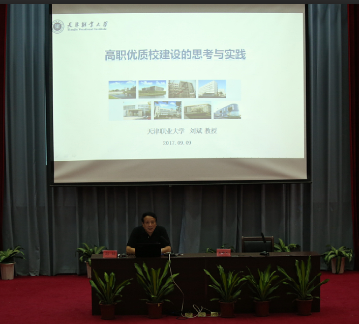 此次研討會邀請了天津職業(yè)大學(xué)校長劉斌教授來校作題為《高職優(yōu)質(zhì)校建設(shè)的思考與實(shí)踐》講座。劉斌教授以優(yōu)質(zhì)校建設(shè)背景、建設(shè)主線、建設(shè)要求以及天津職業(yè)大學(xué)建設(shè)概況為脈絡(luò),通過優(yōu)質(zhì)校建設(shè)的政策文件解讀,各省市優(yōu)質(zhì)校建設(shè)情況對比分析以及天津職業(yè)大學(xué)優(yōu)質(zhì)校建設(shè)情況為案例分析等多角度分析后指出,優(yōu)質(zhì)校建設(shè)要求各校堅(jiān)持正確的辦學(xué)方向和定位、建立深度產(chǎn)教深度融合機(jī)制以及有特色的高水平專業(yè)建設(shè)等。劉斌教授講座結(jié)合了天津職業(yè)大學(xué)的經(jīng)驗(yàn)做法,全面深入地為我們闡述了優(yōu)質(zhì)校建設(shè)的主要方向、主要內(nèi)容及主要思路等,意義深刻,指導(dǎo)性強(qiáng)。