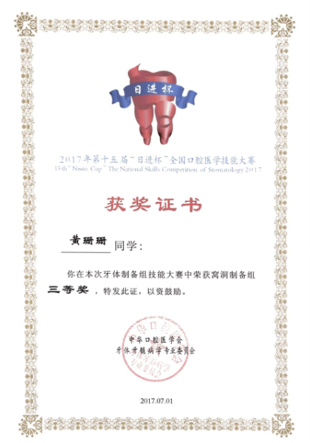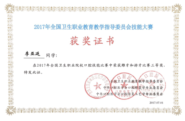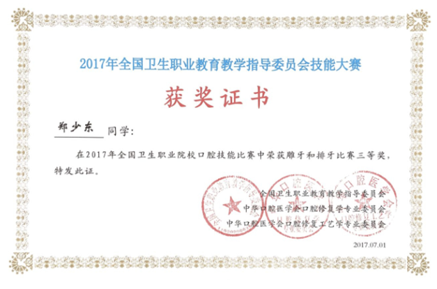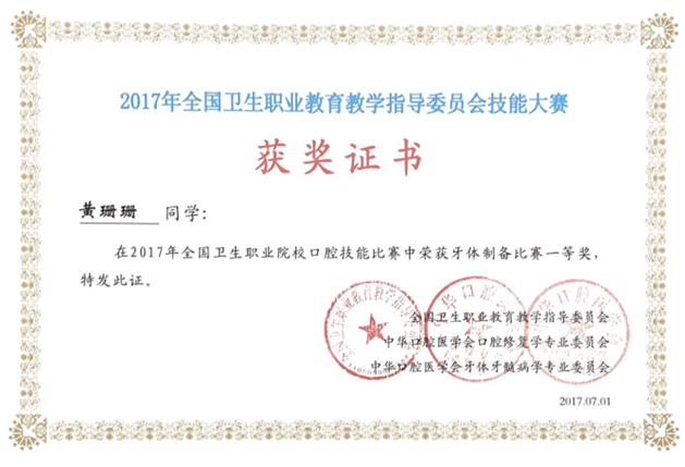 我院臨床醫(yī)學(xué)系派出2015級(jí)口腔醫(yī)學(xué)專業(yè)4名選手參加牙體制備組、雕牙和排牙組的比賽,獲得了可喜的成績(jī)。其中,黃珊珊同學(xué)和吳采玲同學(xué)分別榮獲牙體制備組一等獎(jiǎng)和三等獎(jiǎng),鄭少東、李亞廷同學(xué)均榮獲雕牙和排牙組三等獎(jiǎng)。此外,黃珊珊同學(xué)還榮獲窩洞制備單項(xiàng)獎(jiǎng)三等獎(jiǎng)。