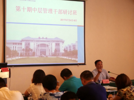 開班儀式上福建省教育廳黨組成員、副廳長陳國龍同志應(yīng)邀來我院作題為《高等職業(yè)教育改革發(fā)展的若干思考》的專題講座,從我省職業(yè)教育的發(fā)展歷程、改革任務(wù)兩個方面展開,強調(diào)高職院校要堅持需求導(dǎo)向、問題導(dǎo)向、效果導(dǎo)向,努力辦專辦特辦優(yōu),我省將繼續(xù)堅持“補短板、抓內(nèi)涵、創(chuàng)特色、樹品牌”,努力把職業(yè)教育提升到新的水平。