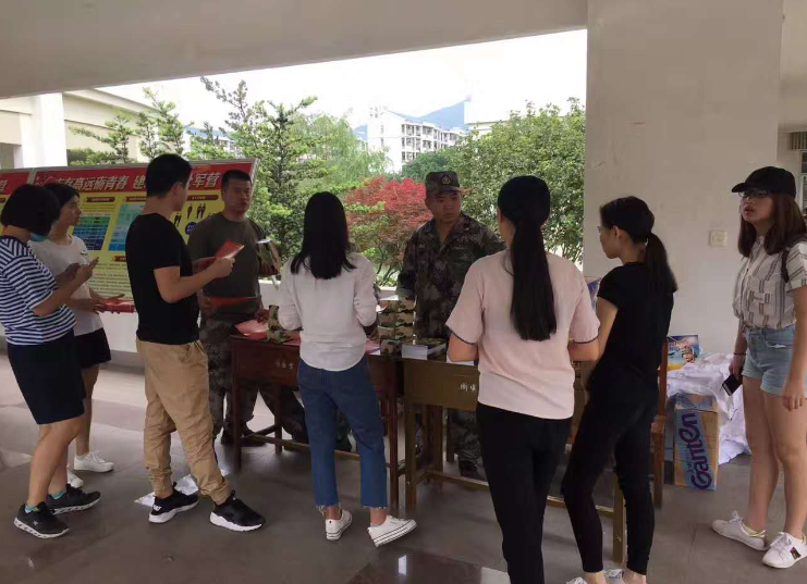 閩侯縣荊溪鎮(zhèn)武裝部工作人員應(yīng)邀來到我校,在校園分發(fā)征兵宣傳冊、征兵紀(jì)念品、為有意參軍入伍的學(xué)生做現(xiàn)場咨詢。