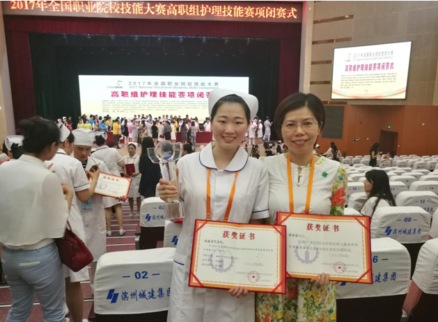 5月24日,在山東濱州舉辦的2017年全國職業(yè)院校技能大賽高職組護(hù)理技能賽項順利閉幕。我院15級護(hù)理專業(yè)許懿洲同學(xué)以扎實的專業(yè)理論知識和操作技能,以及沉著穩(wěn)定的發(fā)揮在140位參賽選手中脫穎而出,榮獲全國一等獎,龔海蓉老師榮獲優(yōu)秀指導(dǎo)教師獎。
