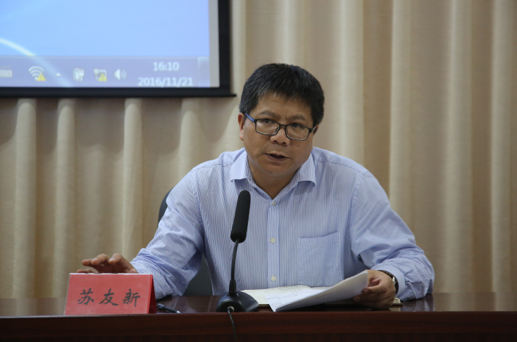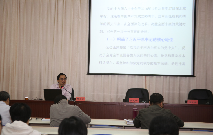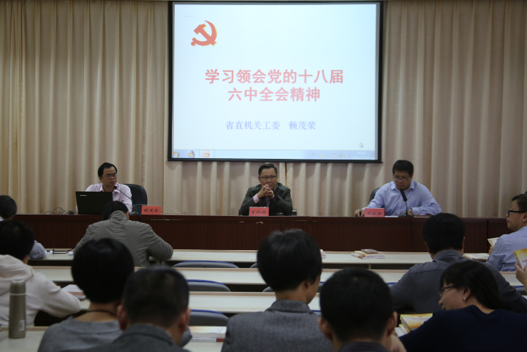 11月21日下午,我院邀請(qǐng)省直機(jī)關(guān)工委講師團(tuán)團(tuán)長(zhǎng)賴茂榮為學(xué)院黨委學(xué)習(xí)中心組、院直機(jī)關(guān)黨員作學(xué)習(xí)領(lǐng)會(huì)黨的十八屆六中全會(huì)精神專題輔導(dǎo)。學(xué)習(xí)會(huì)議由學(xué)院黨委副書記、院長(zhǎng)蘇友新主持。