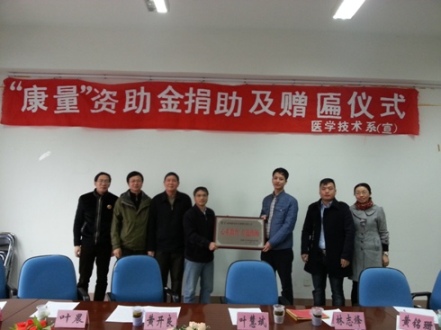 4月10日下午,“康量”資助金捐助暨授匾儀式在醫(yī)學(xué)技術(shù)系三樓會(huì)議室隆重舉行。福州康量醫(yī)療器械有限公司總經(jīng)理林志烽、副總經(jīng)理葉慧斌,我院副院長(zhǎng)黃開(kāi)良、特聘教授葉晨出席,學(xué)院學(xué)工處、醫(yī)學(xué)技術(shù)系相關(guān)負(fù)責(zé)人及各教研室主任、輔導(dǎo)員、受資助學(xué)生共同參加了儀式。