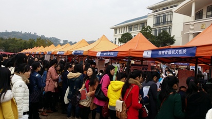 1月25日上午,我院2015屆畢業(yè)生供需見面會(huì)在圖書館廣場(chǎng)成功舉行,現(xiàn)場(chǎng)共有135家用人單位參會(huì),提供就業(yè)崗位3000余個(gè)。招聘會(huì)現(xiàn)場(chǎng)氣氛濃烈,人頭攢動(dòng),多家衛(wèi)生醫(yī)療單位、醫(yī)藥企業(yè)擠滿了咨詢的畢業(yè)生,用人單位也根據(jù)需求,閱覽畢業(yè)生簡(jiǎn)歷,與畢業(yè)生親切交流、吸引人才。 林春明書記、魏立娜副院長(zhǎng)親臨招聘會(huì)現(xiàn)場(chǎng),與企業(yè)相關(guān)負(fù)責(zé)人親切交流,了解用人單位需求,各系部黨總支書記和畢業(yè)生輔導(dǎo)員到現(xiàn)場(chǎng)與用人單位接洽溝通,為畢業(yè)生應(yīng)聘提供指導(dǎo)和服務(wù)。 我院2015屆高職畢業(yè)生共有1887人,有臨床醫(yī)學(xué)、口腔醫(yī)學(xué)、護(hù)理、醫(yī)療美容、藥學(xué)、中藥、醫(yī)學(xué)檢驗(yàn)技術(shù)、醫(yī)學(xué)影像技術(shù)、康復(fù)治療技術(shù)、衛(wèi)生信息管理、醫(yī)用電子儀器與維護(hù)等19個(gè)專業(yè)及專業(yè)方向,中職共有護(hù)理、藥劑、醫(yī)學(xué)檢驗(yàn)技術(shù)、農(nóng)村醫(yī)學(xué)4個(gè)專業(yè)416名畢業(yè)生。 在當(dāng)前全國(guó)普通高校畢業(yè)生就業(yè)總量壓力和結(jié)構(gòu)性矛盾依然突出的嚴(yán)峻形勢(shì)下,隨著學(xué)院辦學(xué)綜合實(shí)力增強(qiáng)和人才培養(yǎng)質(zhì)量不斷提升,系部有品牌,專業(yè)建設(shè)有特色,我院畢業(yè)生愈加受到用人單位的青睞和認(rèn)可,近年來(lái)畢業(yè)生年底就業(yè)率均達(dá)到99.5%。 舉辦畢業(yè)生校園供需見面會(huì),既為廣大畢業(yè)生提供了就業(yè)崗位,搭建了一個(gè)學(xué)院與用人單位的交流平臺(tái),也是對(duì)在校生進(jìn)行了一次就業(yè)指導(dǎo)的實(shí)踐教育,對(duì)學(xué)生轉(zhuǎn)變就業(yè)觀念,認(rèn)清就業(yè)形勢(shì),引導(dǎo)合理定位、調(diào)整就業(yè)期望,明確專業(yè)學(xué)習(xí)目標(biāo),提升職業(yè)素養(yǎng)等方面都有較大幫助。學(xué)院將進(jìn)一步加大就業(yè)指導(dǎo)與個(gè)體咨詢輔導(dǎo),加強(qiáng)就業(yè)管理和服務(wù)工作,關(guān)注特殊群體畢業(yè)生就業(yè),開拓非主干專業(yè)就業(yè)市場(chǎng),全面促進(jìn)我院畢業(yè)生充分高效就業(yè)。(學(xué)生工作處)