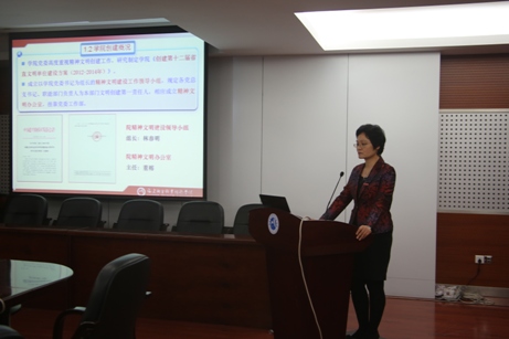 考評組聽取郭素華院長關(guān)于第十二屆省直文明單位創(chuàng)建工作的匯報,觀看學(xué)院創(chuàng)建文明單位的宣傳片,對照第十二屆省直文明單位的各項(xiàng)標(biāo)準(zhǔn),仔細(xì)查閱各種支撐材料,隨機(jī)抽取15位教職員工,訪談、問卷調(diào)查了解學(xué)院創(chuàng)建文明工作的具體情況,實(shí)地查看了辦公室、教學(xué)樓、食堂及校園環(huán)境。 (黨委工作部)