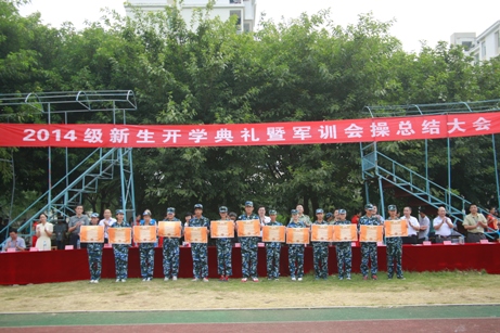 紅旗飄揚(yáng),迎風(fēng)而立;軍姿颯爽,夢想啟航。在金秋九月的最后一天,在喜迎國慶65周年的喜慶日子里, 9月30日上午,學(xué)院隆重舉行2014級新生開學(xué)典禮暨軍訓(xùn)會操總結(jié)大會,學(xué)院黨委書記林春明、副院長黃開良、副院長魏立娜,73919部隊(duì)政委陳錦輝、政治部主任李振東以及學(xué)院有關(guān)部門負(fù)責(zé)人出席了本次大會。大會由魏立娜副院長主持。 軍訓(xùn)匯報表演同學(xué)們精神飽滿、隊(duì)列整齊,充分展示了大學(xué)生的風(fēng)采。本次軍訓(xùn)共評選表彰“內(nèi)務(wù)優(yōu)秀班級”14個、“軍訓(xùn)會操優(yōu)勝班級”14個、“軍訓(xùn)精神文明班級”13個、“軍訓(xùn)優(yōu)勝班級”14個、“軍訓(xùn)積極分子”250名。 在開學(xué)典禮活動中,首先全體新生莊嚴(yán)地進(jìn)行了“醫(yī)學(xué)生誓詞”的宣誓,校友代表、教師代表、在校生代表、新生代表從不同角度作了熱情洋溢的發(fā)言,73919部隊(duì)政治處主任李振東贊揚(yáng)學(xué)院與部隊(duì)的雙擁共建工作,高度評價了同學(xué)們吃苦耐勞精神,希望同學(xué)們繼續(xù)發(fā)揚(yáng)艱苦奮斗的精神,不斷進(jìn)取。 最后,林春明書記作了重要講話,代表學(xué)院黨委為本次軍訓(xùn)付出辛勤汗水、做出巨大努力的全體教官表示衷心的感謝和崇高的敬意,向全體輔導(dǎo)員老師以及工作人員表示由衷的謝意,向2014級新同學(xué)的到來表示熱烈的歡迎。林書記說大學(xué)是人生中一個美好的階段,也是人生中一個重要階段,在這里更多的是同窗室友的生活上相互關(guān)心理解、學(xué)習(xí)上的你追我趕,還有自身職業(yè)素養(yǎng)的提升,體驗(yàn)校園文化的多彩多姿。并對2014級新生提出幾點(diǎn)希望:一是適應(yīng)環(huán)境,盡快實(shí)現(xiàn)心理與生活上、學(xué)生方法上的“兩個轉(zhuǎn)變”。二是明德修身,塑造高尚價值取向。同學(xué)們要踐行社會主義核心價值觀,秉承“業(yè)精德誠”校訓(xùn)精神,牢記救死扶傷、治病救人的神圣職責(zé),做一個德才兼?zhèn)涞拇髮W(xué)生,做一個對社會有所貢獻(xiàn)的人。三是善于學(xué)習(xí),練就過硬知識技能。同學(xué)們要學(xué)會獨(dú)立思考、學(xué)會溝通交流,強(qiáng)化能力培養(yǎng),豐富社會實(shí)踐。四是勇于實(shí)踐,提高素質(zhì)成就夢想。同學(xué)們要敢于實(shí)踐,樂觀自信,善于總結(jié),學(xué)會思考,審視自身,懂得感恩,學(xué)會做人做事,不斷提高自身綜合素質(zhì),促進(jìn)自己成長成才。 開學(xué)典禮暨軍訓(xùn)會操總結(jié)大會結(jié)束后,2014年新生還進(jìn)行了廣播操表演賽、義工聯(lián)合會和紅十字會入會宣誓儀式、大學(xué)生文明行為養(yǎng)成動員會。(學(xué)工處)