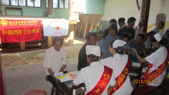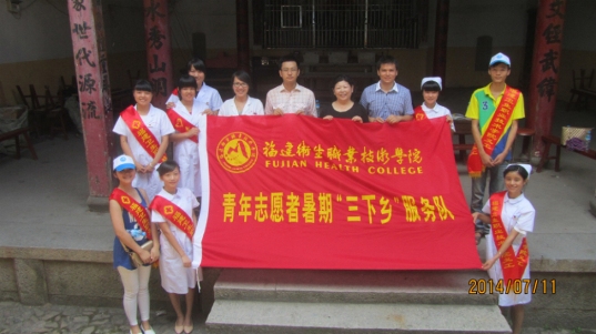 2014年7月9日,福建衛(wèi)生職業(yè)技術(shù)學(xué)院一行14人(教師6人,學(xué)生8人)在魏立娜副院長的帶領(lǐng)下,來到寧德市屏南縣,與共青團屏南縣委聯(lián)合開展暑期“三下鄉(xiāng)”社會實踐衛(wèi)生健康下基層活動。