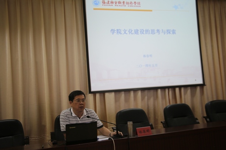 6月3日下午,學(xué)院黨委書記林春明應(yīng)邀在行政樓六樓為全院師生作題為《學(xué)院文化建設(shè)的思考與探索》的講座。全院副高級以上職稱人員、副科級以上干部、教研室主任、輔導(dǎo)員及部分學(xué)生代表200多人聆聽了講座,講座由副院長廖偉堅主持。