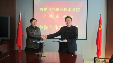 12月26日上午,福建衛(wèi)生職業(yè)技術(shù)學(xué)院與寧德市醫(yī)院校院合作簽字儀式在寧德市醫(yī)院隆重舉行。學(xué)院黨委書記林春明、副院長(zhǎng)廖偉堅(jiān)和寧德市醫(yī)院院長(zhǎng)陳子春、副院長(zhǎng)焦維克等校院雙方領(lǐng)導(dǎo)及相關(guān)人員出席了簽約儀式。
