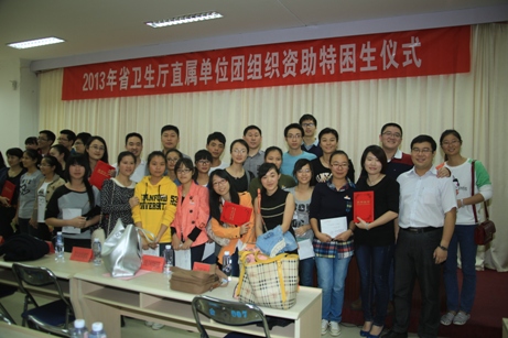 11月7日下午,2013年省衛(wèi)生廳直屬單位團組織資助特困生儀式在我院隆重舉行。衛(wèi)生廳直屬單位各團組織的代表和受資助學(xué)生參加了儀式。院黨委陳雄副書記、魏立娜副院長、省衛(wèi)生廳團委陳曉芩書記、院學(xué)工處黃銘珊處長、院團委宋維副書記出席本次活動。