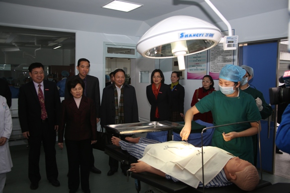 12月10日下午,中共福建省委常委、省人民政府副省長、省委教育工委書記陳樺率省直有關(guān)部門及閩侯縣政府領(lǐng)導來我院調(diào)研衛(wèi)生人才培養(yǎng)情況,調(diào)研省里最近先后出臺的《福建省人民政府關(guān)于進一步支持高校加快發(fā)展的若干意見》和《福建省人民政府辦公廳關(guān)于支持高職院校改革發(fā)展的若干意見》文件精神的落實情況。 陳樺副省長一行實地考察了學院圖書館、護理系及藥學系,深入手術(shù)室、ICU、兒科護理實訓室等以及藥物制劑實訓車間,與學生親切交談,對學院的專業(yè)建設、人才培養(yǎng)、校園文化建設、校企合作等情況做了詳細的了解,對學院建設,尤其是對學院文化廣場、實訓中心等校園文化建設、實訓設施建設給予了高度評價和肯定。 在隨后舉行的匯報會上,陳樺副省長在聽取了學院林春明院長作的題為《優(yōu)化結(jié)構(gòu)提高質(zhì)量,校企合作辦出特色》的工作匯報后,對學院工作提出五個方面要求:一是明確定位,二是加快發(fā)展,三是提升質(zhì)量,四是加強管理,五是塑造文化。陳樺副省長還要求學院加大改革創(chuàng)新力度,加強班子建設,走在示范院校的前列,做引領(lǐng)示范,朝著全國示范性高職院校方向努力,爭創(chuàng)一流。同時,對學院提出的幾個亟待支持解決的問題給予明確的回答和幫助。 風華百年弦歌壯,桃李八閩丹心長。省領(lǐng)導的關(guān)懷,讓學院師生醫(yī)護員工深受感動、備受鼓舞,大家紛紛表示決不辜負上級領(lǐng)導對我們的殷切期望,把領(lǐng)導的關(guān)懷化為工作的動力,扎實工作,奮發(fā)進取,為建設省內(nèi)領(lǐng)先、國內(nèi)一流示范性高職院校作出我們應有的貢獻。