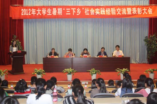 為表彰暑期大學(xué)生社會實(shí)踐活動的豐碩成果,激勵(lì)廣大青年學(xué)生勇于投身社會實(shí)踐,喜迎黨的十八大順利召開。2012年10月16日晚,在學(xué)術(shù)廳隆重舉行2012年大學(xué)生暑假社會實(shí)踐經(jīng)驗(yàn)交流暨表彰大會。出席大會的有魏立娜副院長、學(xué)生工作處黃銘珊處長、護(hù)理系黨總支謝濤書記、院團(tuán)委宋維副書記以及各系部團(tuán)總支書記、受表彰教師代表、學(xué)生代表等400余人。