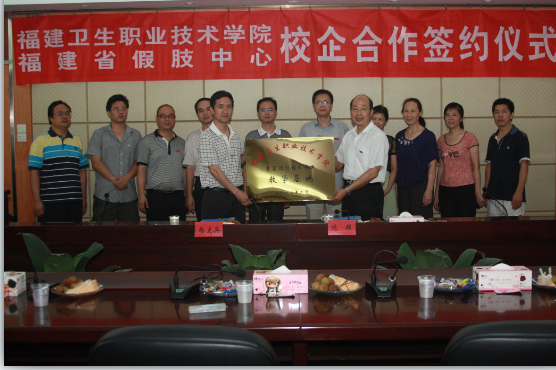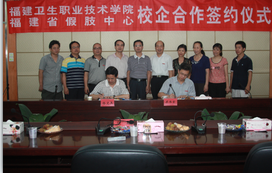 2012年6月28日下午,福建省假肢中心楊文兵主任、張孝超科長蒞臨我院參加學院舉辦的我院與省假肢中心校企合作簽約授牌儀式。學院黨委陳雄副書記、廖偉堅副院長、實踐科倪捷科長以及臨床系的潘在興、鄭向紅、邱滾忠、林國威、曾婷婷、林浩等系部領導一起出席了簽約授牌儀式。