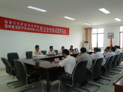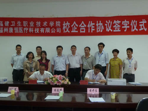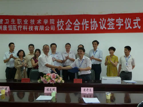 簽字儀式上,福州康恒醫(yī)療科技有限公司陳峰總經(jīng)理、葉晨主任、我院黃開良副院長(zhǎng)分別在儀式上講話。各方一致認(rèn)為,加強(qiáng)校企合作、共育人才,可實(shí)現(xiàn)校企雙方資源共享、互利共贏,有利于學(xué)校教學(xué)改革的深入開展,有利于企業(yè)的持續(xù)發(fā)展,有利于適合現(xiàn)代企業(yè)要求的技能型人才的培養(yǎng)。各方堅(jiān)信,經(jīng)過(guò)校企雙方的務(wù)實(shí)互信和共同努力,校企合作一定能取得圓滿成功。