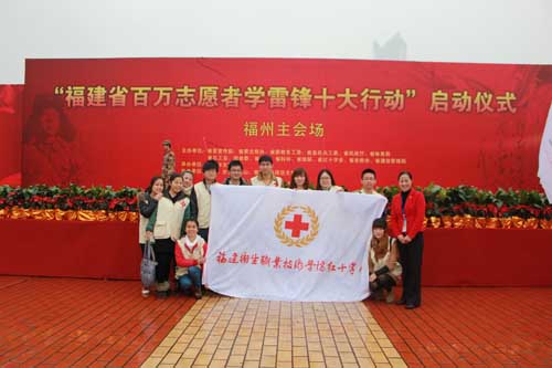 今年是雷鋒同志逝世50周年,50年來(lái)雷鋒精神一直激勵(lì)著我們前行,為弘揚(yáng)雷鋒精神,在更高層次上推動(dòng)我院志愿者活動(dòng)繼續(xù)向前發(fā)展,3月4日,應(yīng)福建省紅十字會(huì)邀請(qǐng),在院團(tuán)委老師的帶領(lǐng)下,我院組織了10名志愿者參加了由省委宣傳部、省委文明辦等單位主辦的“福建省百萬(wàn)志愿者學(xué)雷鋒十大行動(dòng)”啟動(dòng)儀式。
