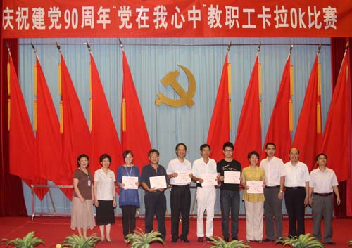 由院工會、團委、婦委會聯(lián)合舉辦的慶祝中國共產黨成立90周年“黨在我心中”教職工卡拉ok比賽日前圓滿結束,9個工會小組選送的16位選手參加了比賽,施漢生老師榮獲一等獎,林宇、洪常青老師獲二等獎,馬少寧、柯仁懷、邱麒老師獲三等獎。院領導嚴肅書記、陳雄副書記、黃開良、魏立娜副院長為獲獎者頒獎,嚴書記還應邀登臺深情演唱《繡紅旗》,贏得滿場掌聲。比賽自始至終氣氛熱烈,歌聲和掌聲表達了學院師生員工對黨的熱愛和祝福。 (工會 團委 婦委會)