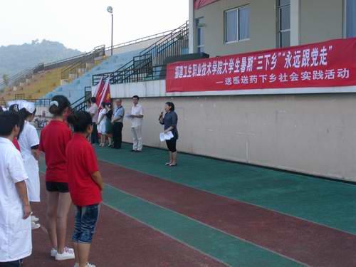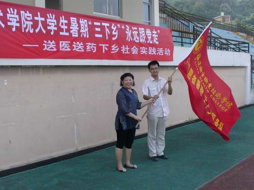 7月8日,我院舉行2011年“三下鄉(xiāng)”暑期社會實踐活動啟動儀式,魏立娜副院長為我校赴龍巖武平實踐團授旗,團委邱滾忠書記為藥學系、護理系、醫(yī)學技術(shù)系和臨床醫(yī)學系實踐團隊授旗,標志著我院2011年暑期社會實踐活動全面開展。