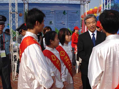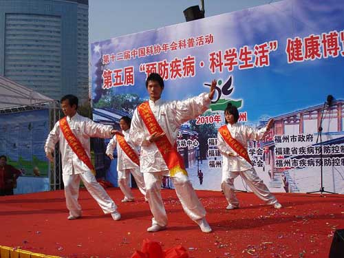 在健康博覽會上,我院4名青年志愿者登臺獻(xiàn)上精彩的二十四式太極拳表演,為廣大市民推廣科學(xué)健身方法,促進(jìn)群眾健身技能的提高?;顒蝇F(xiàn)場,中國工程院院士、中華預(yù)防醫(yī)學(xué)會王隴德會長與我院青年志愿者親切交談,詳細(xì)詢問我院學(xué)生課余活動開展情況,并鼓勵志愿者積極開展群體性科學(xué)健身活動。(院團(tuán)委)