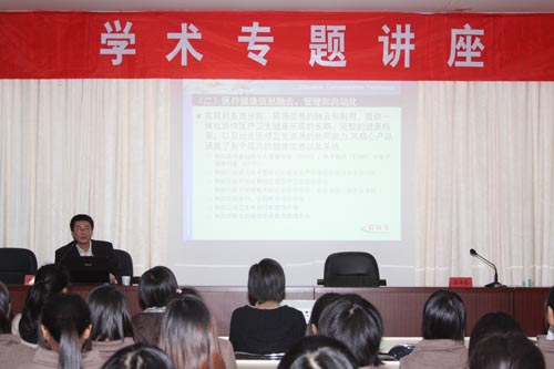 2010年11月16日13:40,好醫(yī)生醫(yī)學(xué)教育中心副總裁兼CTO首席技術(shù)官史彤毅在行政樓六樓會議室為我校師生帶來一場精彩的講座,講座題目是《醫(yī)療衛(wèi)生信息化—技術(shù)、創(chuàng)新、應(yīng)用和發(fā)展》。公共基礎(chǔ)部信息技術(shù)教研室老師和10級衛(wèi)生信息管理301班、10級臨床醫(yī)學(xué)(影像)301班及10級醫(yī)藥營銷301班的同學(xué)聆聽了此次講座。同學(xué)們反映熱烈,從中了解到信息技術(shù)在醫(yī)療衛(wèi)生服務(wù)行業(yè)中的演進和發(fā)展,進一步明確醫(yī)療衛(wèi)生信息在當(dāng)今醫(yī)療保障體系中的重要樞紐作用。