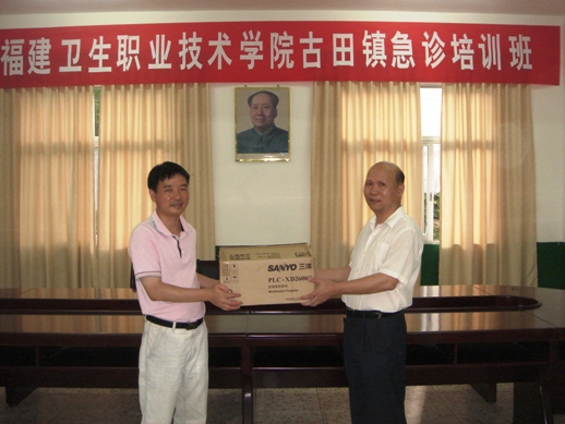 5、發(fā)揮作為省基層衛(wèi)生技術(shù)人員培訓(xùn)集團牽頭單位的作用,合理整合醫(yī)療資源,爭取為古田鎮(zhèn)衛(wèi)生院提供部分急需的醫(yī)療、教學(xué)設(shè)備和技術(shù)服務(wù)。首批贈送教學(xué)培訓(xùn)用投影儀壹臺。