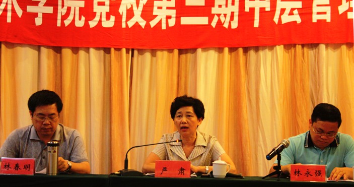2010年8月23日至25日,我院黨校舉辦了第3期中層干部培訓(xùn)研討班,學(xué)院領(lǐng)導(dǎo)和中層干部及省衛(wèi)生廳人事處林永強(qiáng)副處長(zhǎng)、夏智明副調(diào)研員、附屬醫(yī)院黨委林建團(tuán)書記、教學(xué)辦負(fù)責(zé)人等共44位同志參加。