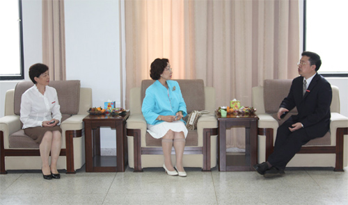 蔡雅賢副校長(zhǎng)(中)與院領(lǐng)導(dǎo)親切交談