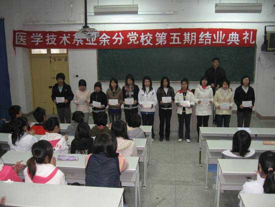 2010年2月2日下午,醫(yī)學(xué)技術(shù)系第五期業(yè)余分黨校結(jié)業(yè)典禮在系部第二階梯教室隆重舉行。結(jié)業(yè)典禮由系團總支副書記黃小芳老師主持,系黨總支副書記洪聿榮老師和全體培訓(xùn)班學(xué)員出席了結(jié)業(yè)典禮。