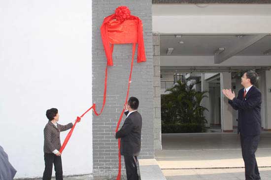在藥學系系部,嚴肅書記和陳勇總經理為校企合作揭牌。簽約儀式結束后,在廖偉堅副院長和歐春木主任的陪同下,惠好醫(yī)藥集團參會人員參觀了藥學系。