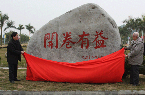 接著,高胡老校長和林春明院長為圖書館前“開卷有益“石刻(高胡題寫)揭幕。隨后離退休同志在院領(lǐng)導(dǎo)的陪同下參觀了校園。(辦公室)