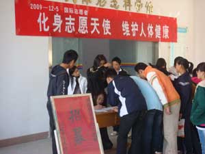 2009年12月5日是第24個(gè)國(guó)際志愿者日,我院“省健康科普教育基地”在臨床醫(yī)學(xué)專業(yè)2009級(jí)學(xué)生中招募“健康教育科普志愿者”,雖然正值周末,仍有50多名學(xué)生踴躍報(bào)名,他們認(rèn)真填寫“福建省科普志愿者”報(bào)名表,志愿履行服務(wù)承諾,并認(rèn)真參加了科普基地為期半天的強(qiáng)化培訓(xùn)。