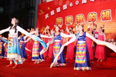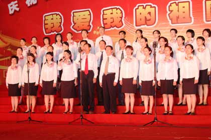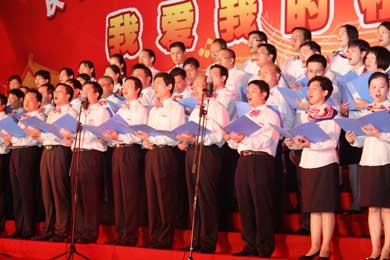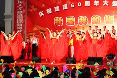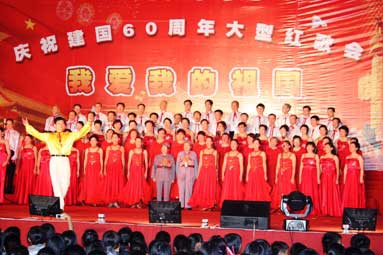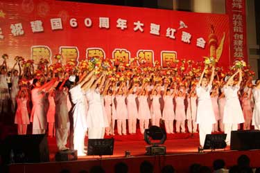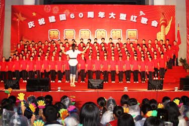 9月29日晚,由院黨委主辦、黨委工作部、團(tuán)委、工會(huì)共同承辦的“我愛我的祖國——慶祝中華人民共和國成立60周年師生大型紅歌會(huì)”在學(xué)院圖書館前廣場(chǎng)隆重舉行,衛(wèi)生廳楓葉合唱團(tuán)、附屬醫(yī)院、73919部隊(duì)和我院師生組成的13支代表隊(duì)參加了演出,省衛(wèi)生廳陳秋立副廳長,原衛(wèi)生廳崔華副廳長、人事處黃俊章處長,附屬醫(yī)院季曉林院長、林建團(tuán)書記、共建部隊(duì)汪政委、政治部陳主任及學(xué)院黨委嚴(yán)肅書記、林春明院長、陳雄副書記、廖偉堅(jiān)副院長、黃開良副院長等領(lǐng)導(dǎo)和學(xué)院師生3000多人歡聚一堂,共慶祖國60華誕。 紅歌會(huì)在各方塊隊(duì)伍拉歌聲拉開帷幕,省衛(wèi)生廳楓葉合唱團(tuán)雄健洪亮的歌聲中一曲紅色經(jīng)典歌曲大聯(lián)唱《希望》,唱出了黨在新中國成長歷程中不可磨滅的功勛,附屬醫(yī)院歌伴舞《走進(jìn)西藏》讓人領(lǐng)略了藏族姑娘的優(yōu)美舞姿、附屬醫(yī)院大合唱《祝福祖國》和《山丹丹花開紅艷艷》,共建部隊(duì)演唱的《愛國奉獻(xiàn)歌》和《工化兵之歌》,院直機(jī)關(guān)、公共基礎(chǔ)部、藥學(xué)系、護(hù)理系、檢驗(yàn)影像系、醫(yī)學(xué)基礎(chǔ)部臨床醫(yī)學(xué)系合唱隊(duì)演唱的《愛我中華》、《沒有共產(chǎn)黨就沒有新中國》、《團(tuán)結(jié)就是力量》等經(jīng)典紅色歌曲在舞臺(tái)上此起彼伏,師生們?cè)谝欢味问煜ぜぐ旱闹餍芍?,一起回到那激情燃燒的歲月,在紅歌世界中體味感動(dòng)與愛國激情。 近2個(gè)小時(shí)的合唱比賽氣氛熱烈、歡聲迭起,全體教職工齊上陣,師生同臺(tái)傳唱紅色歌曲,不斷舞動(dòng)的紅旗讓會(huì)場(chǎng)成了紅色的海洋。晚會(huì)在全體放聲高歌《歌唱祖國》的雄壯豪邁的歌聲中圓滿落幕。 這臺(tái)紅歌會(huì)以喜慶、隆重、昂揚(yáng)、熱烈為基調(diào),以歌聲、掌聲、表演為烘托,充分表示了全院師生對(duì)偉大祖國60華誕的喜慶之情。(黨委工作部 團(tuán)委 工會(huì))