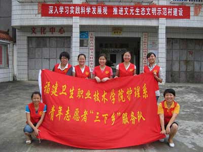 護理系“紅土地”暑期社會實踐小分隊于2009年7月8日至7月11日前往龍巖市上杭縣古田鎮(zhèn)開展暑期“三下鄉(xiāng)”社會實踐活動。“紅土地”暑期社會實踐小分隊由7名班團干部和輔導(dǎo)員賴文金老師組成。小分隊采取集中和登門拜訪的方式,為老區(qū)群眾提供體檢、健康咨詢指導(dǎo),與群眾同吃同住同勞動,開展建設(shè)社會主義新農(nóng)村調(diào)研,以實際行動發(fā)揮黨團員的先鋒模范作用,踐行社會主義榮辱觀。整個活動,小分隊共服務(wù)革命老區(qū)群眾500余人次,分發(fā)藥品1000余元,完成調(diào)查問卷100余份。小分隊還到古田會議遺址參觀學(xué)習(xí),接受愛國主義、革命主義教育。隊員們表示,“星星之火,可以燎原”,當(dāng)前海峽西岸經(jīng)濟區(qū)建設(shè)正在如火如荼的開展,他們將繼承發(fā)揚黨的優(yōu)良傳統(tǒng),把火熱的青春投入到社會主義和諧社會的建設(shè)中,投入到社會主義新農(nóng)村的建設(shè)中,投入到海峽西岸經(jīng)濟區(qū)建設(shè)中,在奉獻中實現(xiàn)自己的人生價值。(護理系)