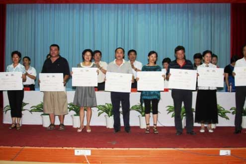 大會宣讀了榮獲上級表彰的教職工先進(jìn)集體和個人名單,對2008~2009學(xué)年教職工先進(jìn)集體和個人以及獲教學(xué)名師獎和優(yōu)秀教學(xué)獎的教師進(jìn)行了表彰,領(lǐng)導(dǎo)還為從事教育工作男滿30周年、女滿23周年教職工頒獎,