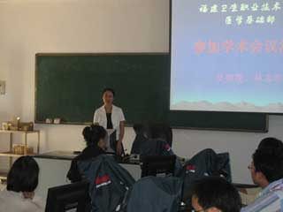 10月28日下午2:00,醫(yī)學(xué)基礎(chǔ)部在系部301一體化教室舉行學(xué)術(shù)會(huì)議匯報(bào)會(huì),由林志明、吳碧蓮兩位老師結(jié)合PPT與圖片分別就出席2008國(guó)際骨質(zhì)疏松與骨礦鹽疾病學(xué)術(shù)會(huì)議、中國(guó)解剖學(xué)會(huì)2008年學(xué)術(shù)年會(huì)的情況向全系教師作了精彩的匯報(bào),并與全系教師分享了參加會(huì)議的收獲、心得和體會(huì)。