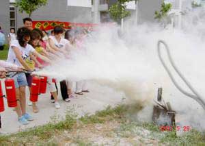 6.為促進商業(yè)網(wǎng)點、食堂全體職工對消防知識的了解,提高消防安全意識,保護人身安全,將損失減少到最低限度, 2007年5月15日下午,保衛(wèi)處組織進行滅火器使用培訓(xùn)和現(xiàn)場油盆滅火演練,共使用滅火器70個,參加人數(shù)近百人。