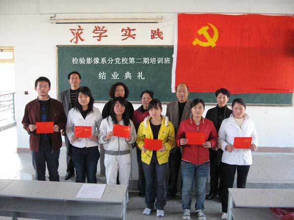 2007年2月6日下午4:00,檢驗(yàn)影像系第二階梯教室內(nèi)掌聲雷動,喜氣洋洋。檢驗(yàn)影像系分黨校第二期培訓(xùn)班結(jié)業(yè)典禮在這里隆重舉行。院黨委陳雄副書記、系領(lǐng)導(dǎo)馬少寧主任、蘭寶金書記、第一黨支部劉瓔婷書記、第二黨支部馬小燕書記出席了開幕式。會議由陳茜老師主持。