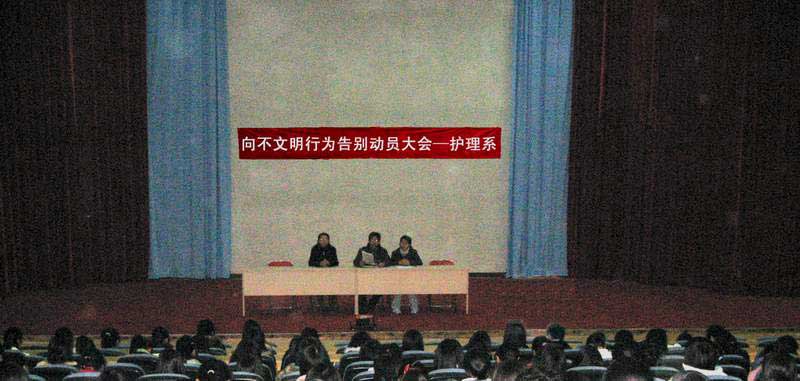 護理系于3月8日(周四)下午5點在院學(xué)術(shù)報告廳舉行“向不文明行為告別”系列活動動員大會,由護理系團總支書記林浩老師主持動員會并作動員講話,學(xué)工處黃銘珊老師代表學(xué)工處參加了大會并做了重要講話,李映照老師代表全系教師、林採平同學(xué)代表全系同學(xué)發(fā)出“告別不文明行為,展現(xiàn)天使風(fēng)采”倡議。本次動員大會旨在調(diào)動全系學(xué)生積極投身于精神文明建設(shè)活動,將精神文明建設(shè)活動落到實處,在學(xué)生中深化“講禮貌,做言行文明的學(xué)生;講友善,做關(guān)愛他人的學(xué)生;講誠信,做表里如一的學(xué)生;講衛(wèi)生,做身心健康的學(xué)生;講自立,做自強向上的學(xué)生”的思想。 (護理系,現(xiàn)代教育技術(shù)中心)