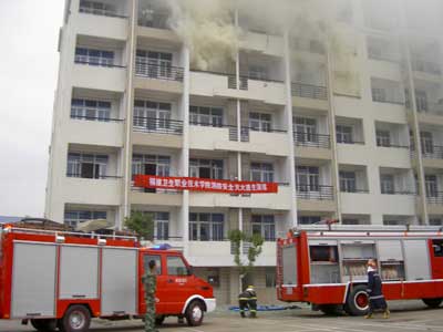 演練于下午三時(shí)正式開始,分為火災(zāi)報(bào)警、人員緊急疏散逃生和火災(zāi)撲救三個(gè)環(huán)節(jié)。演練模擬學(xué)生公寓著火,學(xué)院值班室接到報(bào)警后,立即報(bào)告院領(lǐng)導(dǎo)并撥打火警“119”;院領(lǐng)導(dǎo)啟動(dòng)消防預(yù)案,老師引導(dǎo)學(xué)生迅速逃離火災(zāi)現(xiàn)場;閩侯縣公安消防大隊(duì)一中隊(duì)派出14名消防官兵,2部消防車進(jìn)行實(shí)戰(zhàn)滅火。演練過程指揮有力、行動(dòng)有序。演練現(xiàn)場人聲鼎沸,氣氛緊張,秩序井然,演習(xí)十分逼真有效,達(dá)到了預(yù)期的效果。