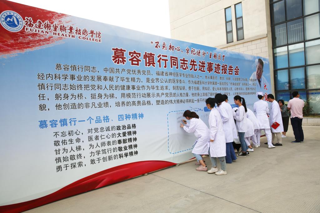 本次活動(dòng)是福建衛(wèi)生職業(yè)技術(shù)學(xué)院“不忘初心、牢記使命”主題教育開展以來(lái)舉行的特色活動(dòng)之一。學(xué)校黨委書記曾武祈說(shuō),希望力弘揚(yáng)學(xué)習(xí)慕容慎行同志“一個(gè)品格、四種精神”,廣大黨員干部要像慕容慎行同志那樣堅(jiān)定共產(chǎn)黨人的理想信念,牢記為人民服務(wù)的宗旨義務(wù),在各自的崗位上,對(duì)標(biāo)慕容慎行同志的先進(jìn)事跡,按照“守初心、擔(dān)使命、找差距、抓落實(shí)”的總要求,在真抓實(shí)干中踐行初心使命,為培養(yǎng)高素質(zhì)技能型衛(wèi)生健康人才作出新的貢獻(xiàn),為學(xué)院建設(shè)譜寫新的篇章。