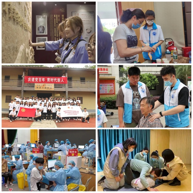 (三)開展“我為群眾/師生辦實事”實踐活動。我校學(xué)生志愿團(tuán)前往鋪前社區(qū)開展以“建黨百年守初心,健康義診志愿行”為主題的醫(yī)學(xué)知識、新冠疫苗科普及黨史宣講活動,并對社區(qū)內(nèi)的老人們進(jìn)行測血壓、推拿、刮痧、拔火罐等一系列義診,解決群眾的操心事、煩心事、揪心事,深入基層、服務(wù)百姓,傳遞關(guān)懷和溫暖。此外,我校護(hù)理學(xué)院第二黨支部的老師協(xié)同校紅十字會志愿者前往到福建幼兒師范高等專科學(xué)校附屬象園幼兒園開展急救知識宣教活動,用知識傳播愛心;青年志愿者走進(jìn)福建農(nóng)業(yè)職業(yè)技術(shù)學(xué)院、福建船政交通職業(yè)學(xué)院開展CPR急救教學(xué)、血壓測量、血型鑒定、中醫(yī)推拿、刮痧、拔罐等活動,用技術(shù)造福師生。