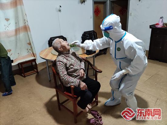 化身“大白”,入戶為出行不便的老年人做核酸檢測。 蔡鋆澤 張曉燕 供圖