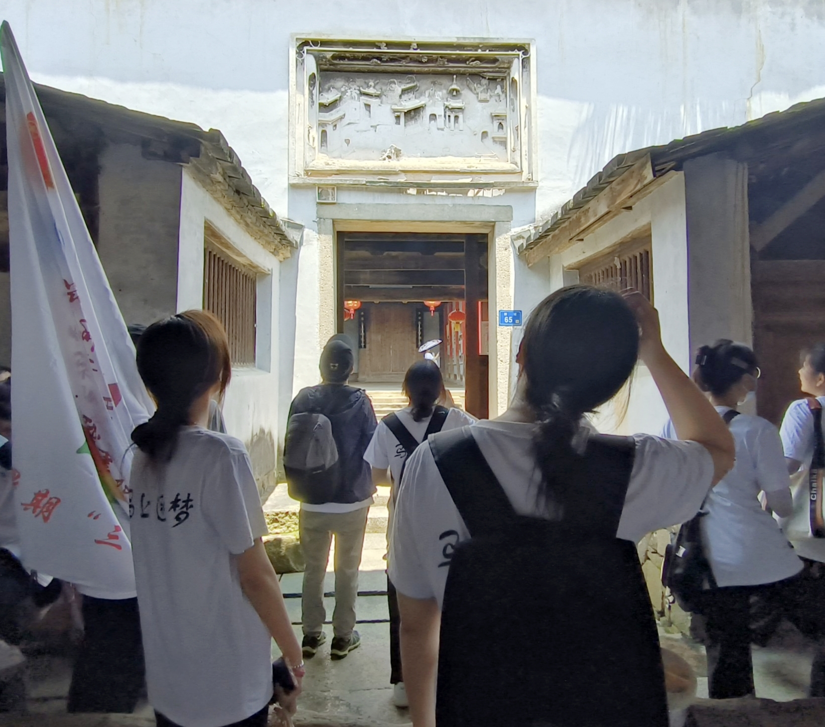 “萬物有所生,而獨知守其根?!备V菔且蛔赜小昂I鄒魯”之稱的國家歷史文化名城,而古建筑是構(gòu)成歷史文化名城的要素之一。在實踐教學(xué)現(xiàn)場閩侯縣新坡村,坐落著一座建于乾隆初年(1736-1795)的江氏古厝(又稱永奮永襄厝)?!肮咆任幕癁楹文芰糇∴l(xiāng)愁?”帶著問題,以古厝文化為教學(xué)資源,實踐隊員“五進(jìn)”古厝。古厝廳堂寬敞、墻體深厚、海石為地、風(fēng)洞送涼、風(fēng)雅角亭、回音傳話,科學(xué)與精巧中無不彰顯古人的杰出智慧和勤勞勇敢,無不讓人感慨于“工匠精神”。古厝內(nèi)還設(shè)有家風(fēng)家訓(xùn)館,圖文并茂中述說著江氏代代相傳齊家教子、交友處世、任事用權(quán)等方面的優(yōu)良家風(fēng)?;顒蝇F(xiàn)場,隊員們細(xì)品其深厚人文底蘊,深切感受當(dāng)?shù)卮迕駥咆鹊淖院栏?,并重溫?xí)近平總書記在《<福州古厝>序》中殷殷囑托,“保護(hù)好古建筑、保護(hù)好文物就是保存歷史,保存城市的文脈,保存歷史文化名城無形的優(yōu)良傳統(tǒng)?!贝舜位顒釉谠鰪娢幕孕诺耐瑫r,激發(fā)了隊員們熱愛文化、珍惜文化的情懷。