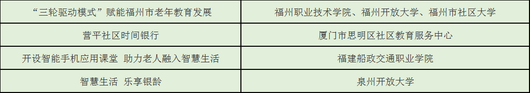 其中,“智慧助老”優(yōu)質(zhì)工作案例中,《“三輪驅(qū)動模式”賦能福州市老年教育發(fā)展》等4個(gè)案例入選。