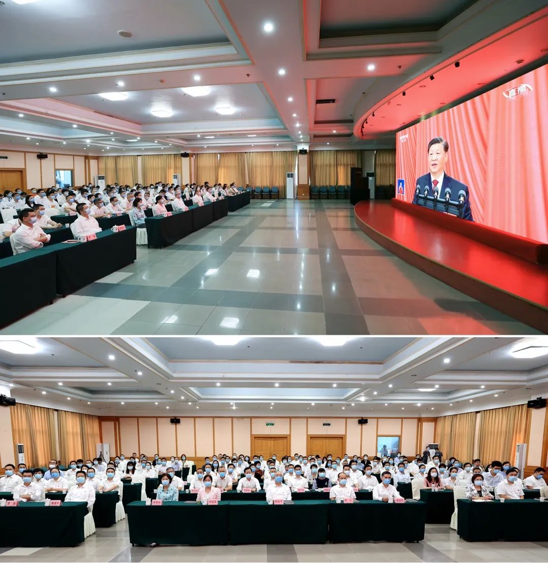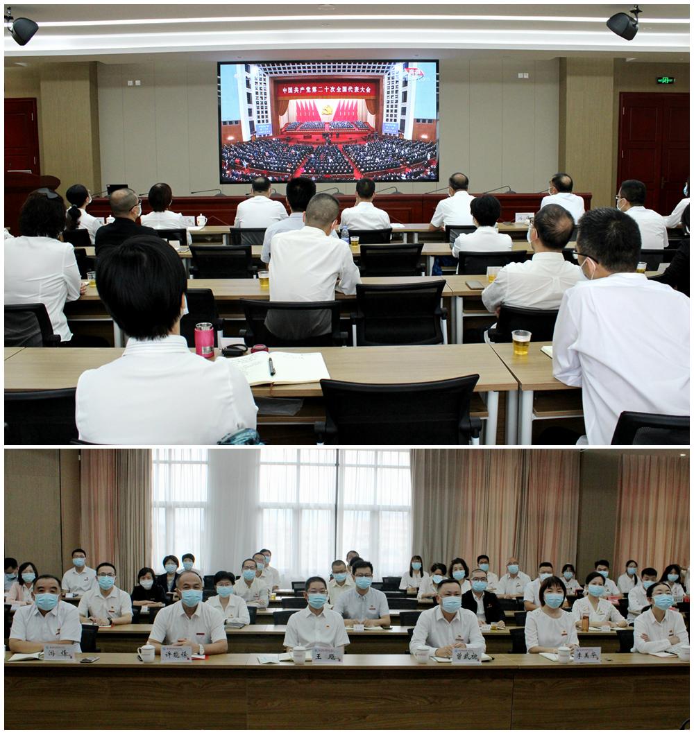 省委教育工委書記,省教育廳黨組書記、廳長林和平等委廳領(lǐng)導(dǎo)與廳機(jī)關(guān)黨員干部共同收聽收看黨的二十大開幕會