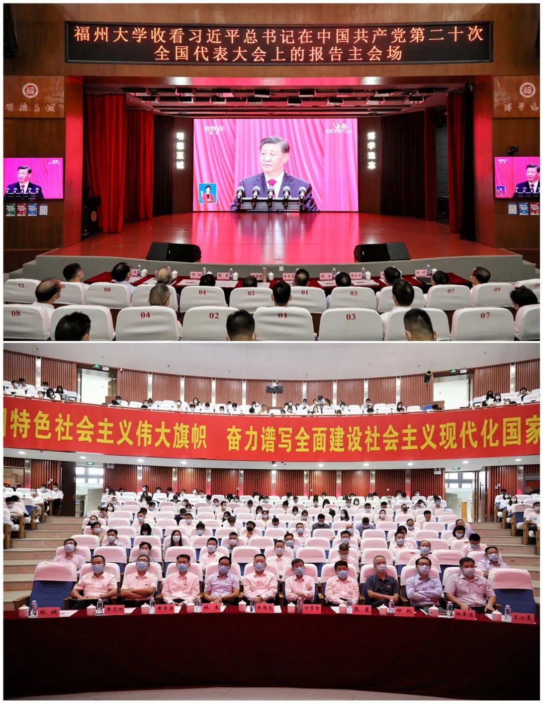 省委教育工委副書記、省教育廳黨組成員林生與福州大學(xué)師生代表共同收聽收看黨的二十大開幕會