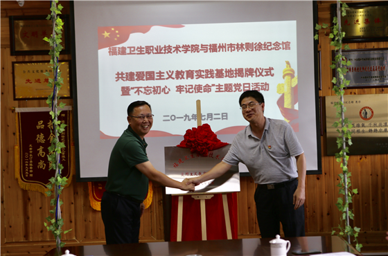 7月2日,福建衛(wèi)職院與福州市林則徐紀(jì)念館共建愛(ài)國(guó)主義教育實(shí)踐基地。該校黨委書記曾武祈與館長(zhǎng)陳繼勇分別代表校館雙方為基地簽約揭牌。
