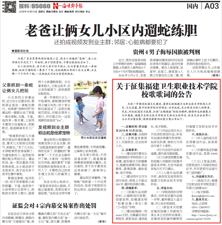 (海峽都市報(bào)2018年10月14日 國內(nèi)A03版 )